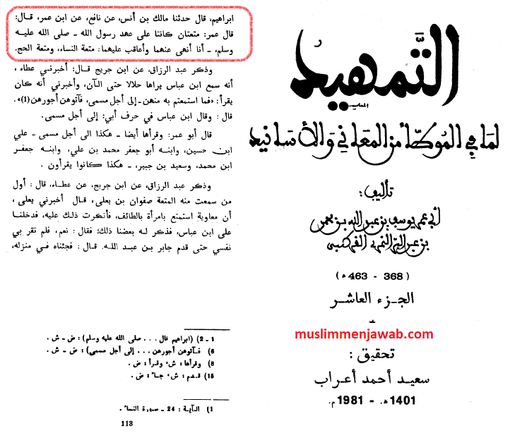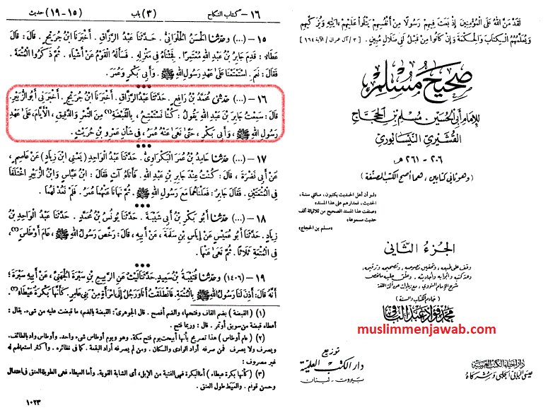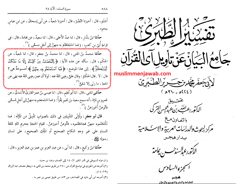 Ungkapan di atas terkam dengan jelas di dalam kitab Sahih Muslim, juz 2, hal. 1023, Bab An-Nikah Mut’ah, Muallif Muslim bin Hujjaj Abul Hasan Qusyairi An-Naisyaburi (Wafat: 261 H). Muhaqiq Fuad Abdul Baqi, penerbit: Darul Ihya’ At-Turtsul Arabi-Beirut.