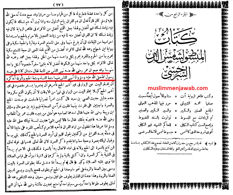 Sarkhasi di dalam kitab Al-Mabsuth dan Ibnu Hazm di dalam kita Al-Mahla, keduaanya menulis begini, “Umar bin Khatab berkata, ‘Nikah mut’ah dan haji tamattut halal di zaman Nabi. Dan hari ini aku mengharamkan kedunya. Sesiapa yang melakukan keduanya, maka aku anggap kafir.’”