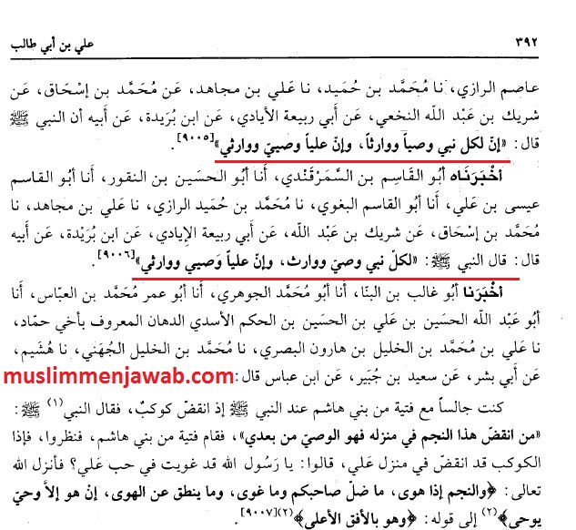 Dalam kitab Tarikh Madinah Dimasq karya Ibnu ‘Asakir di pembahasan Ali bin Abi Thalib, termaktub hadis bahwa Rasulullah Saw berkata: Sesungguhnya setiap nabi memiliki Washi dan Pewaris, dan sesungguhnya Ali adalah Washiku dan Pewarisku.