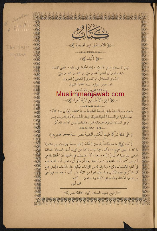 [1] Ibn Hajar al-Asqallani, Ahmad bin Ali bin Muhammad, Kitab al-Ishabah Fi Tamyiz al-Shahabah, jil: 1, hal: 7, cet: al-Saadah, Mesir.