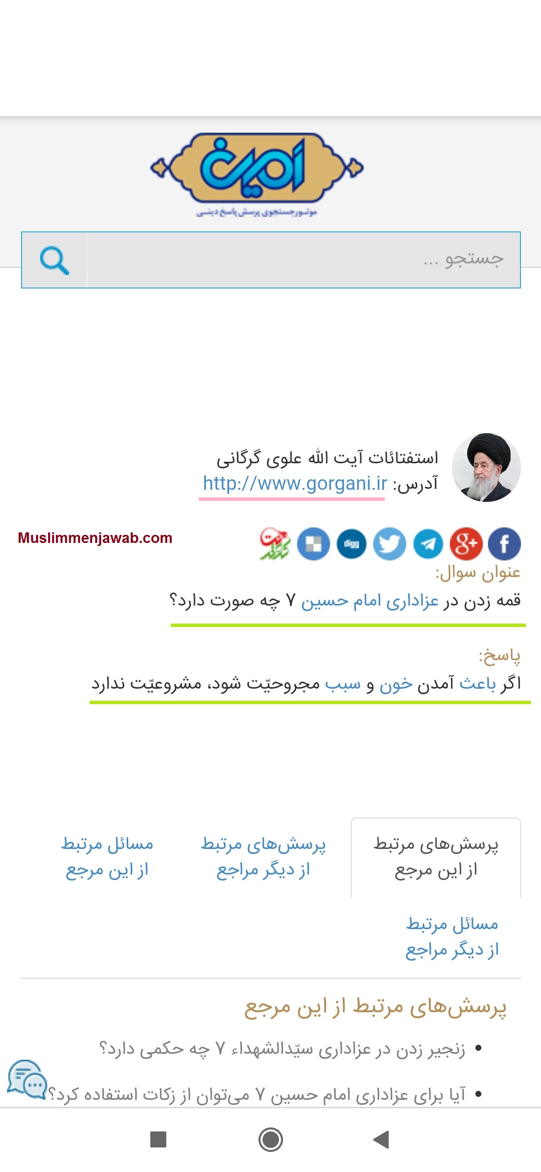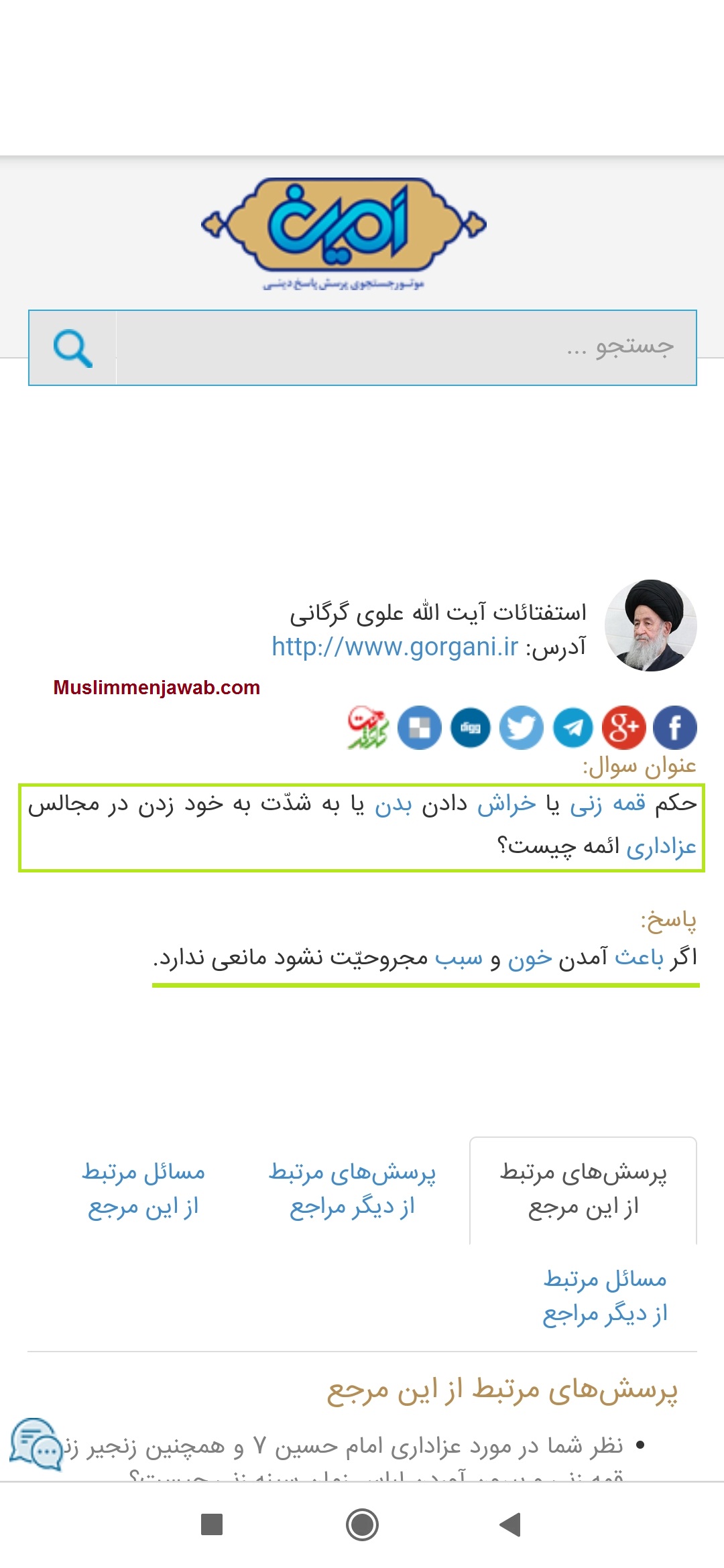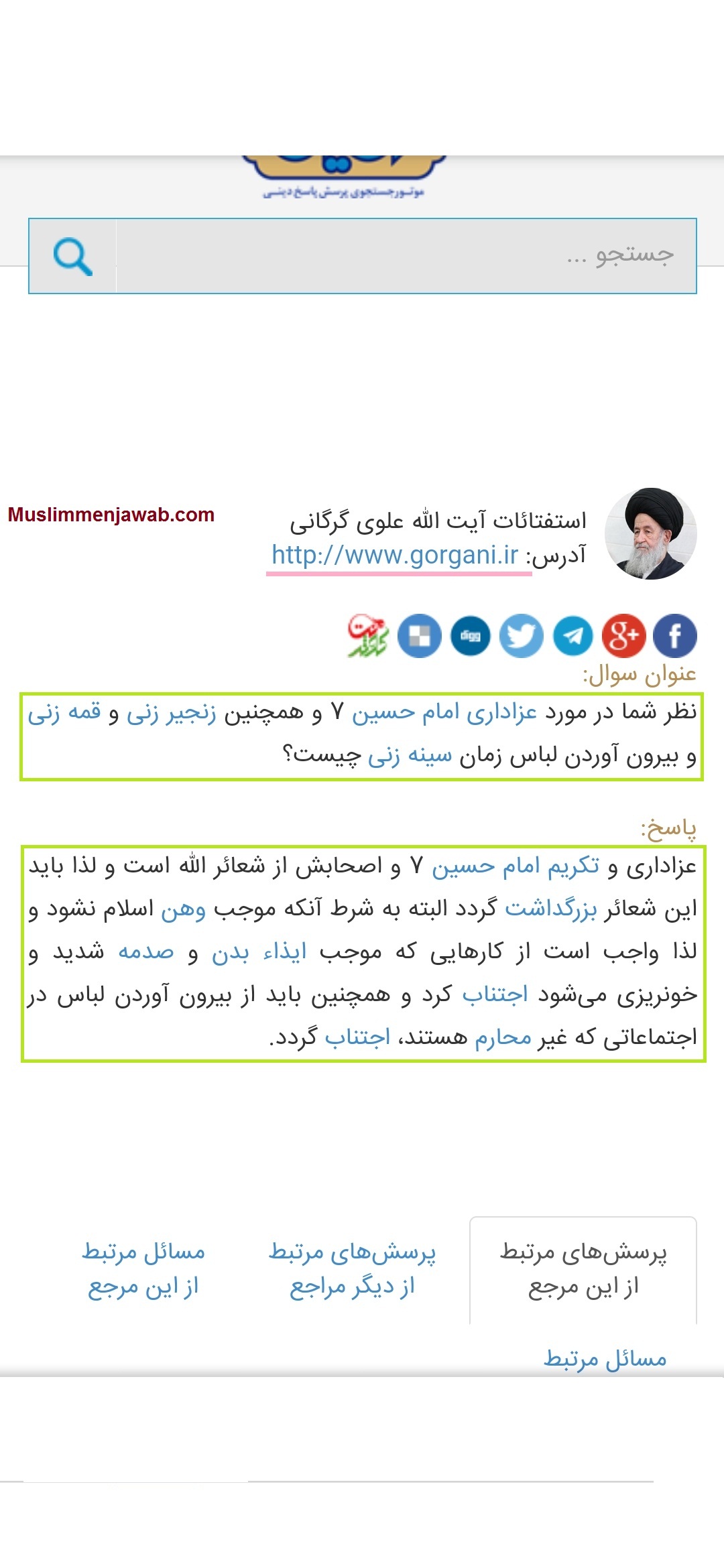 Melanjutkan sanggahan yang sudah ada, pada tulisan kali ini akan diajukan bukti lainnya; dimana ulama serta marja besar lainnya menolak praktek melukai diri tersebut. Sayyid Alawi Gurgani dalam menanggapi beberapa pertanyaan seputar hal tersebut menyampaikan: