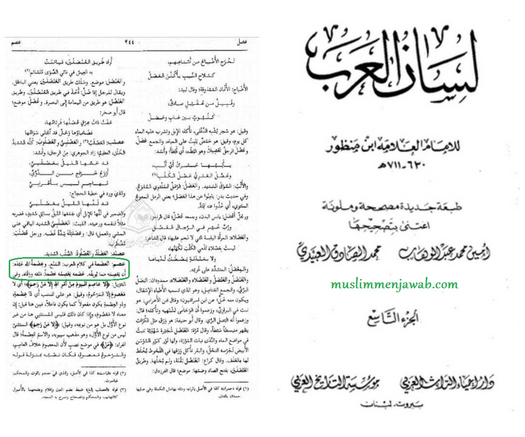[1] Ibnu Manzur, Lisanul Arab Juz 9 Hal. 244 Cet. Daru Ihya At-Turats Al-Arabi – Beirut