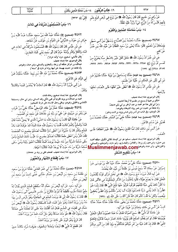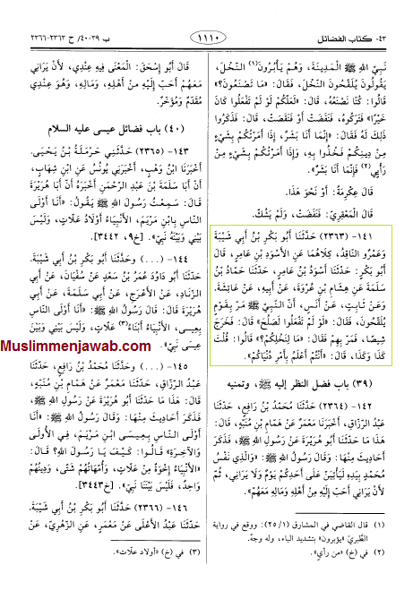 “… dari Aisyah dari Tsabit dari Anas, bahwa Nabi SAWW melewati suatau kaum yang sedang mengawinkan (kurma) maka beliau bersabda: Seandainya mereka tidak melakukan hal itu akan baik. Ia berkata: Lalu kurma tidak membuahkan hasil. Kemudian ia lewat dengan mereka dan ia bersabda: apa yang terjadi dengan kurma kalian? Mereka menjawab: Engkau mengatakan demikian dan demikian. Beliau bersabda: Kalian lebih tau dengan urusan dunia kalian.[2]”